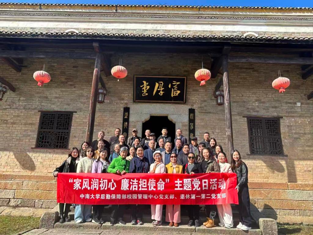 11月28日,校园管理中心党支部组织在职党员、发展对象、离退休党员赴双峰县开展“家风润初心廉洁担使命”主题党日活动。后勤保障部副部长曾定帮到场指导。