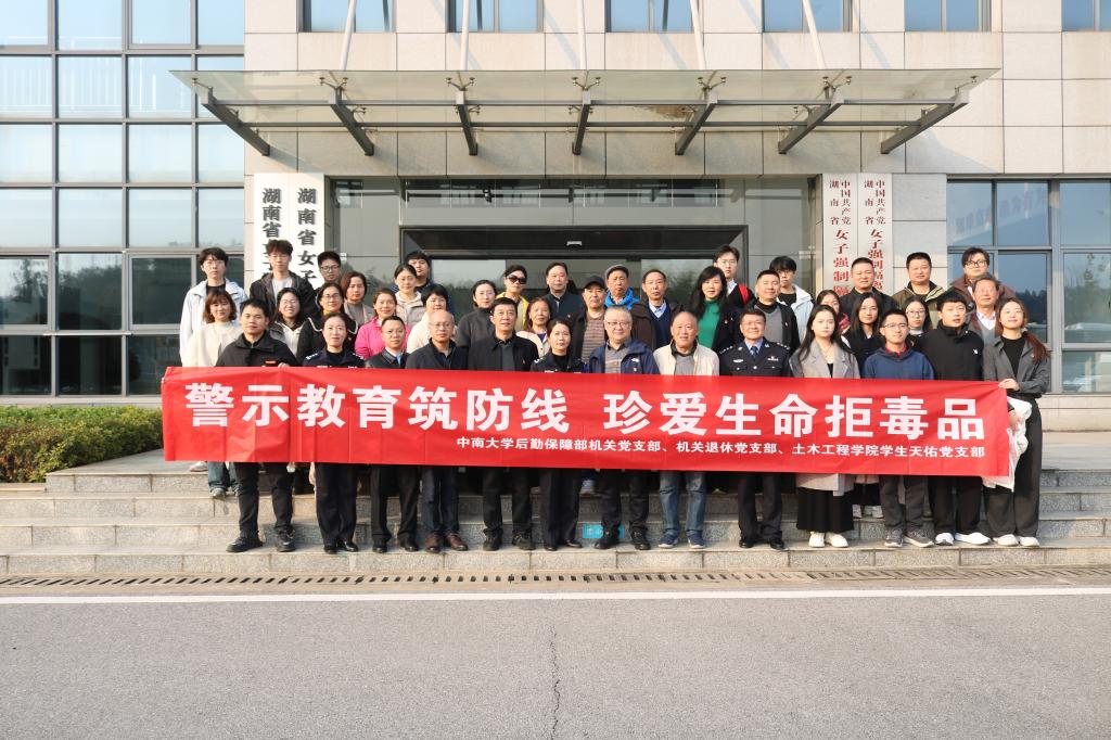 2025年12月10日下午,后勤保障部机关党支部、退休党支部联合土木工程学院学生天佑党支部共赴湖南省女子强制隔离戒毒所,开展“警示教育筑防线 珍爱生命拒毒品”主题党日活动。湖南省女子强制隔离戒毒所党委书记、所长龙桂芳,党委委员、纪委书记刘功元,后勤保障部党委书记乔硕功,党委副书记、纪委书记唐海仕参加本次活动。