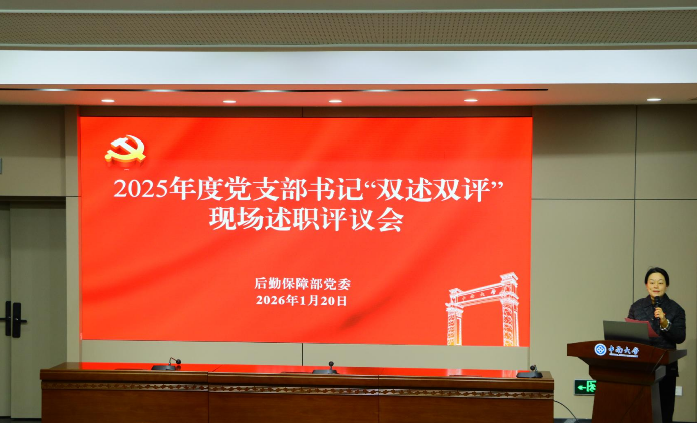 1月20日,后勤保障部2025年度党支部书记“双述双评”现场述职评议会在升华楼报告厅召开。部班子成员,在职党支部书记、副书记、组织委员及党员代表等56人参会。部党委副书记陈可主持会议。