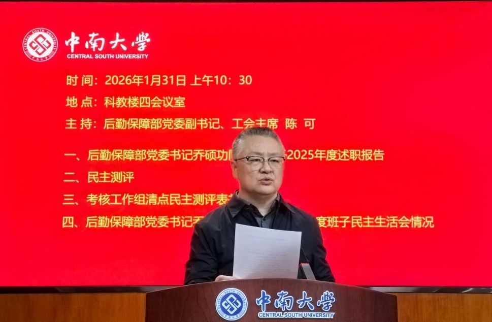 部党委书记乔硕功代表领导班子,从四个方面报告了2025年度主要工作:一是加强政治引领,在班子领学、支部研学、全员联学中深化理论武装、把准前进方向;二是坚持刀刃向内,高标准开展学习教育,高质量推进整改整治,高要求强化监督执纪,持续打造后勤优良作风;三是主动担当作为,通过办好民生实事、优化服务供给、筑牢安全底线,提升校园的硬件水平、生活温度和发展质效;四是拓展服务内涵,在激发队伍活力、做强质量品牌、优化服务育人中稳步推动后勤事业发展。