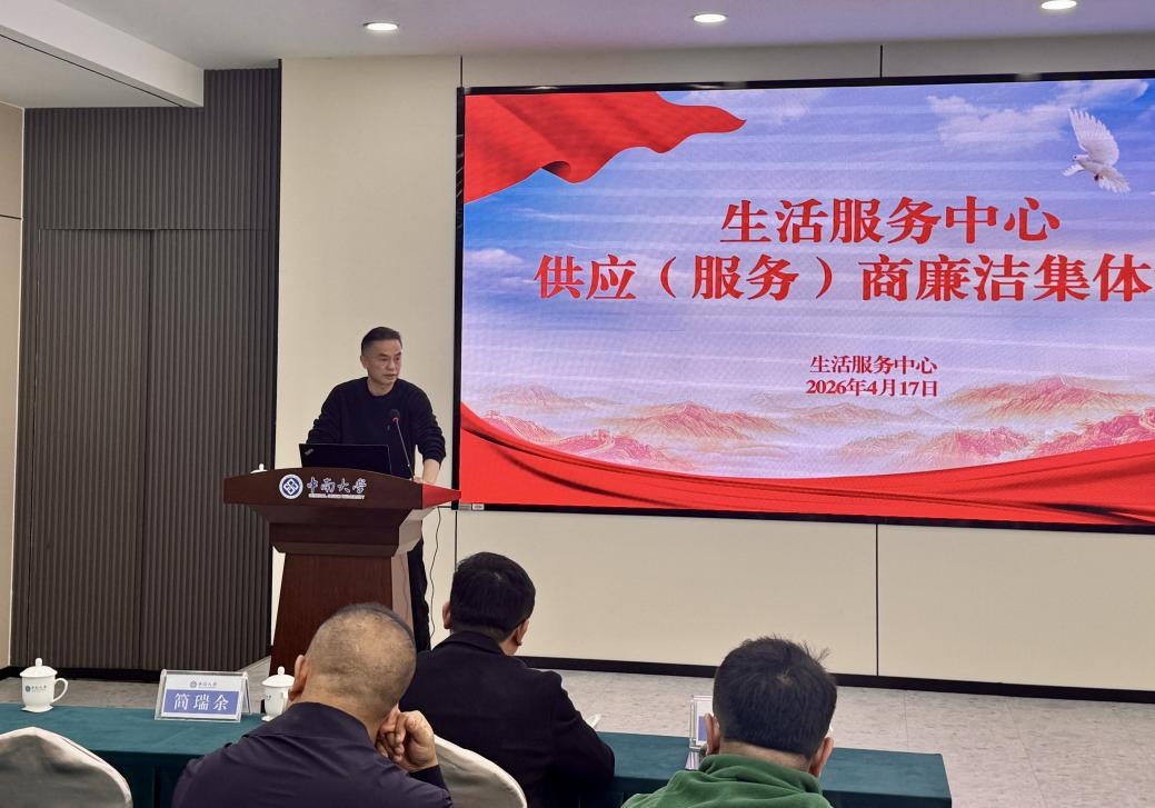 为进一步提升规矩意识、压实廉洁责任,构建风清气正的工作生态,4月17日上午,生活服务中心在麓南校区鸿业学术交流中心召开供应(服务)商集体廉洁谈话会议。中心班子成员、部门负责人、关键岗位员工及供应(服务)商60余人参加会议,后勤保障部副部长曾定帮,部党委副书记、纪委书记唐海仕到会指导。