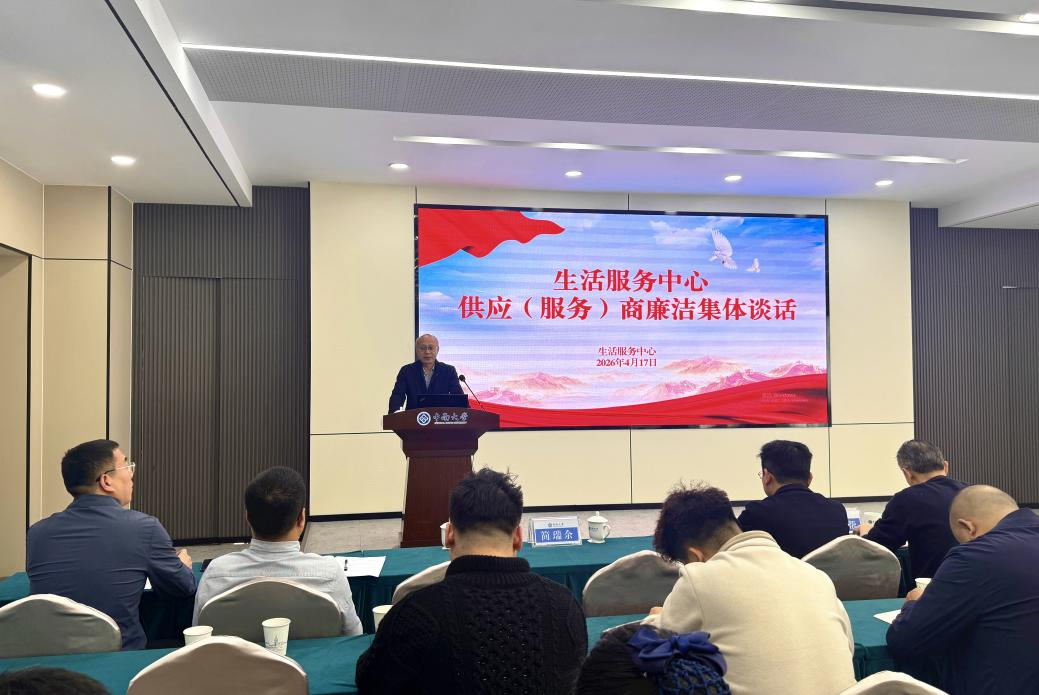 会议集体学习了习近平总书记在二十届中央纪委五次全会上的重要讲话精神。中心主任任阳结合生活服务网点、热水供应、宾馆服务、车辆保障、场馆管理等业务逐项提出要求。他强调,供应商应恪守合作纪律,依规依约开展业务,构建公开透明、公平公正的校商合作关系。供应(服务)商代表现场郑重承诺:将严守纪律,筑牢廉洁防线;恪守合约,提升服务品质;接受监督,以质量赢市场、以口碑谋长远。